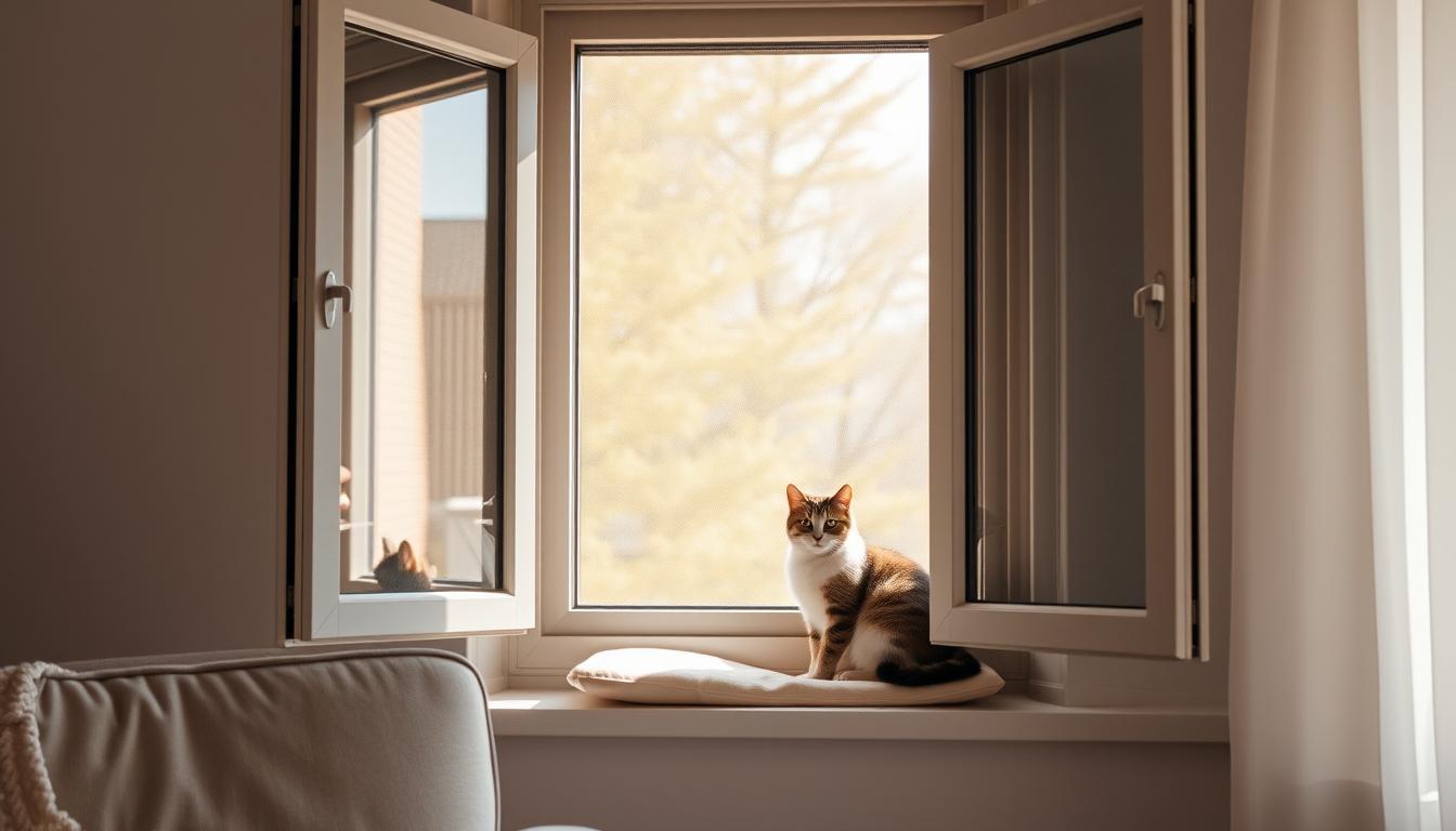 Η ασφαλής προστασία για γάτες στα παράθυρα περιλαμβάνει διάφορα μέτρα. Αυτά βοηθούν να αποτραπούν οι γάτες από ανοιχτά παράθυρα. Έτσι μειώνεται ο κίνδυνος ατυχημάτων και πτώσεων.